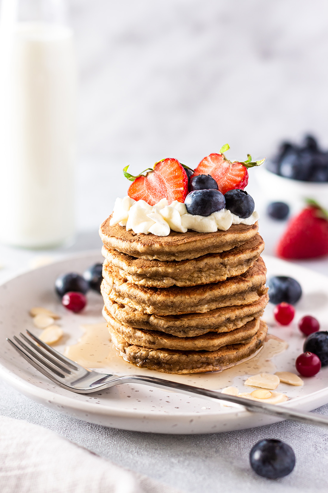 They are perfect to serve with fresh berries, yogurt and a handful of nuts or seeds. And, of course, drizzle pancakes with pure maple syrup. But there are many other great toppings, suitable for these tasty banana oatmeal pancakes. For example, they taste unbelievably good when topped with caramelized apples. And also, don’t forget about the super delicious combination of bananas and peanut butter.